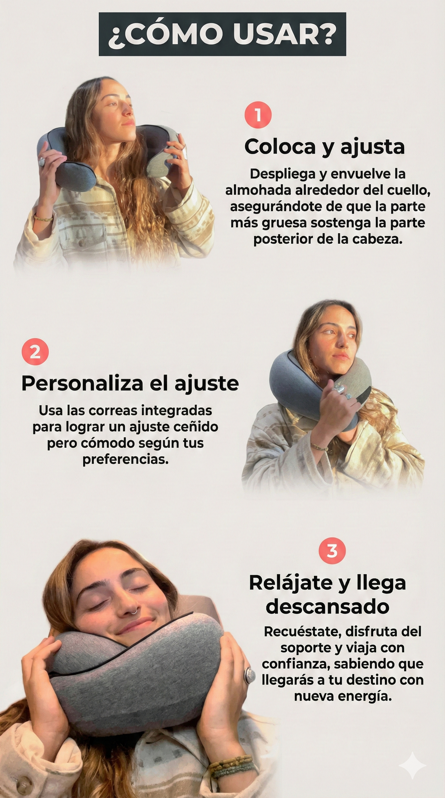 Tras meses de pruebas y dedicación, nos enorgullece presentar la Almohada de Viaje Saludable. Es la única almohada de viaje que ofrece una combinación única de soporte cervical, diseño ergonómico y materiales de alta calidad para mayor comodidad.