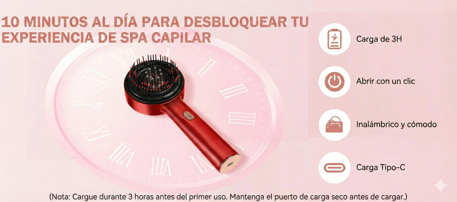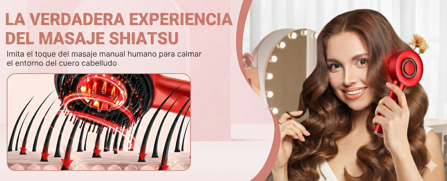 ¿Estrés? Es una de las causas principales de la caída. Nuestro sistema de micro-vibración no solo se siente delicioso, sino que desbloquea la circulación sanguínea en el cuero cabelludo, permitiendo que lleguen más nutrientes a cada hebra. Relájate mientras te cuidas.