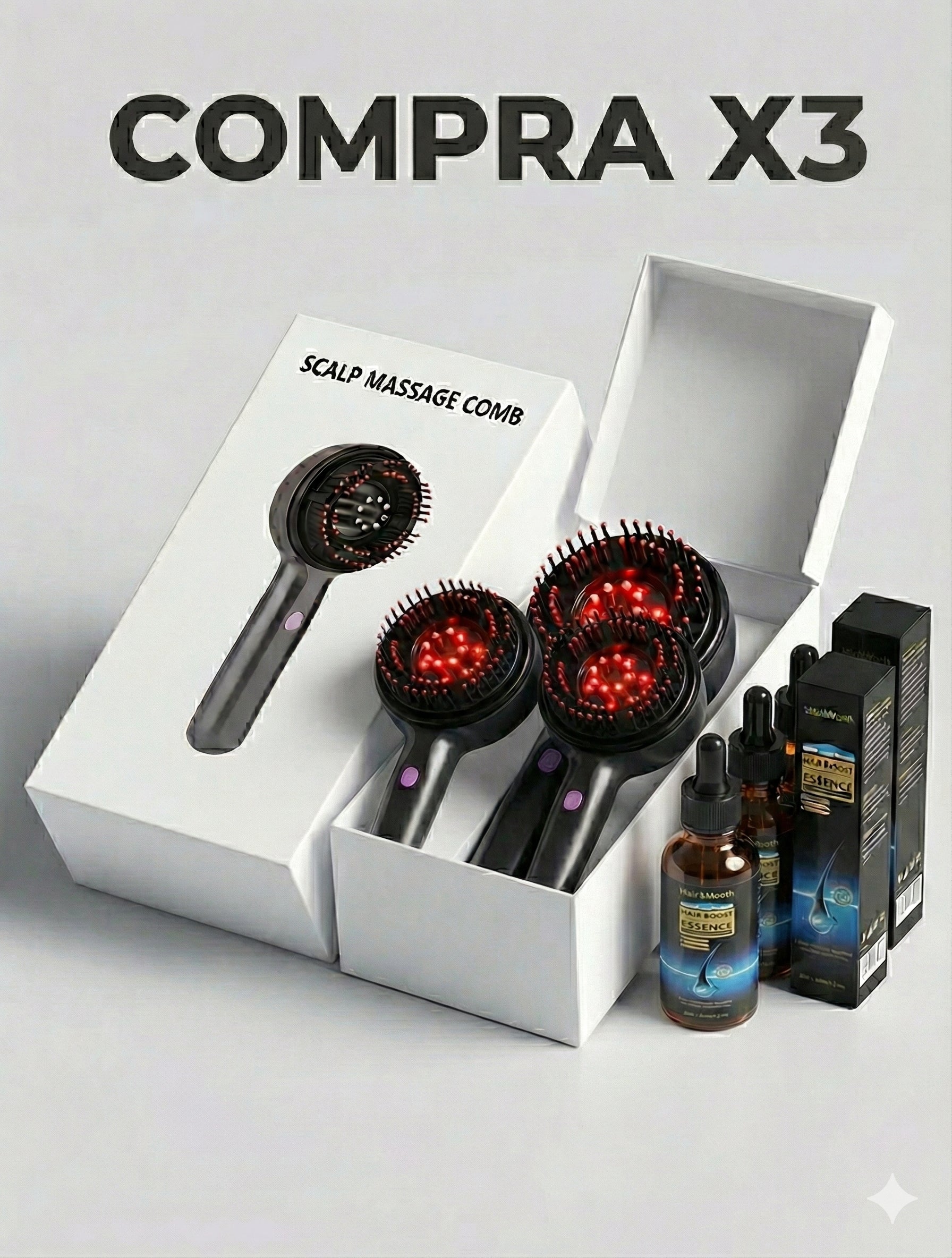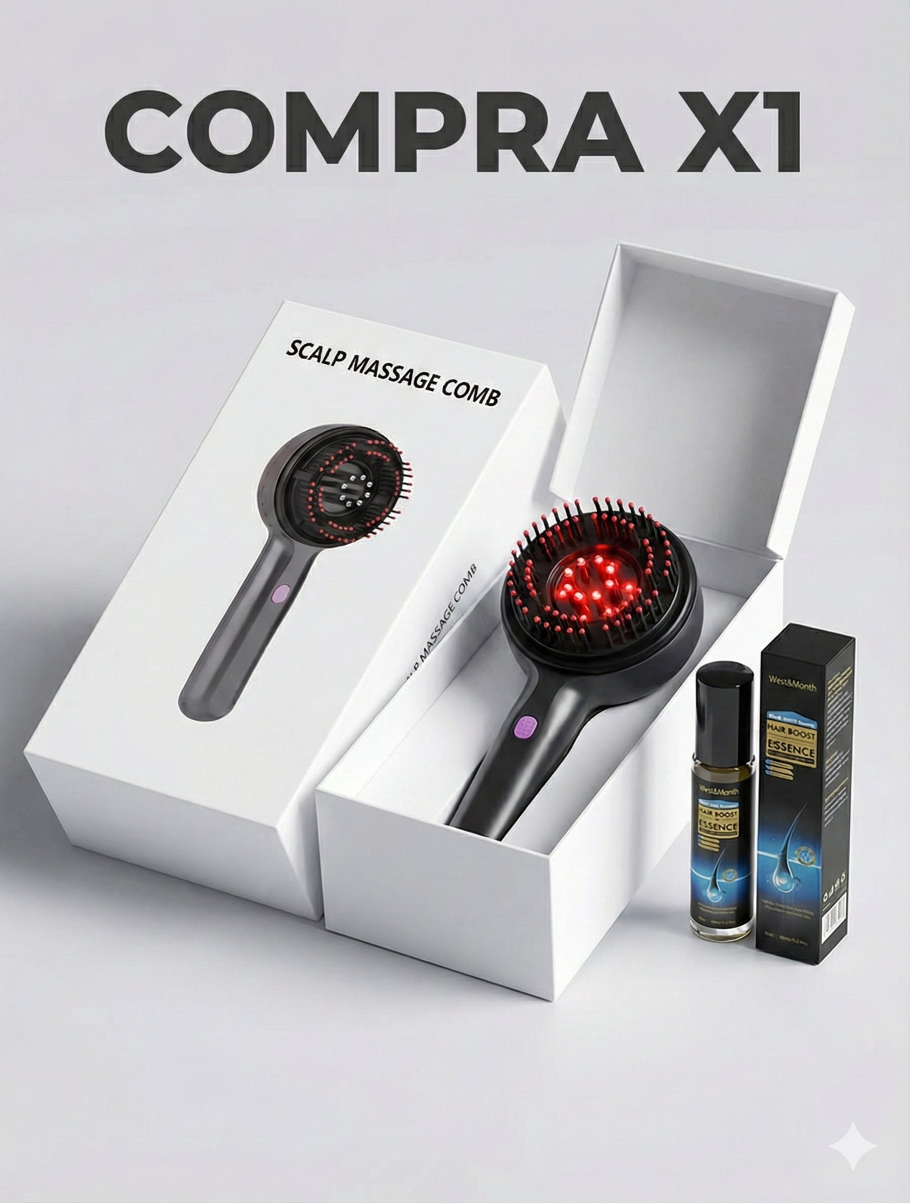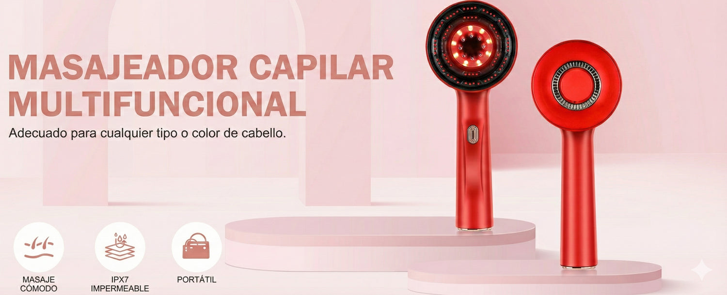 Gracias a la combinación de estimulación mecánica (masaje) y biológica (luz), aceleras el ciclo de crecimiento. Úsalo 2 semanas y notarás menos pelos en la ducha y más densidad frente al espejo. Justo a tiempo para las fiestas.
