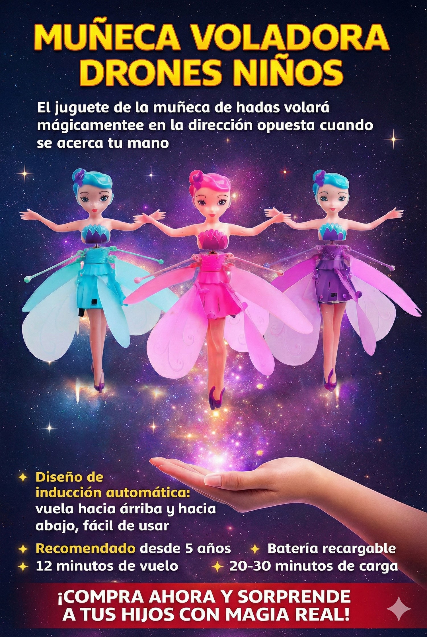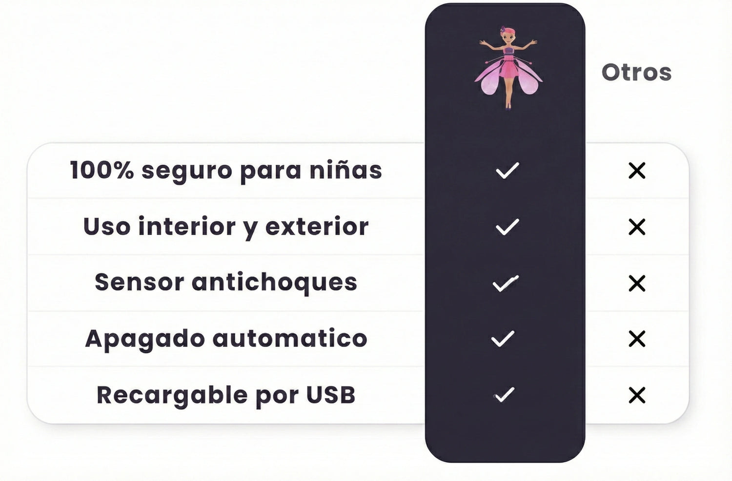 La diferencia de la HADA MÁGICA VOLADORA: Este no es el típico juguete de lanzar y atrapar. Su sistema de sensor™ crea una trayectoria mágica ✨ diferente con cada lanzamiento. En un instante flota, al siguiente asciende y regresa a tus manos como si estuviera viva. 🙌
